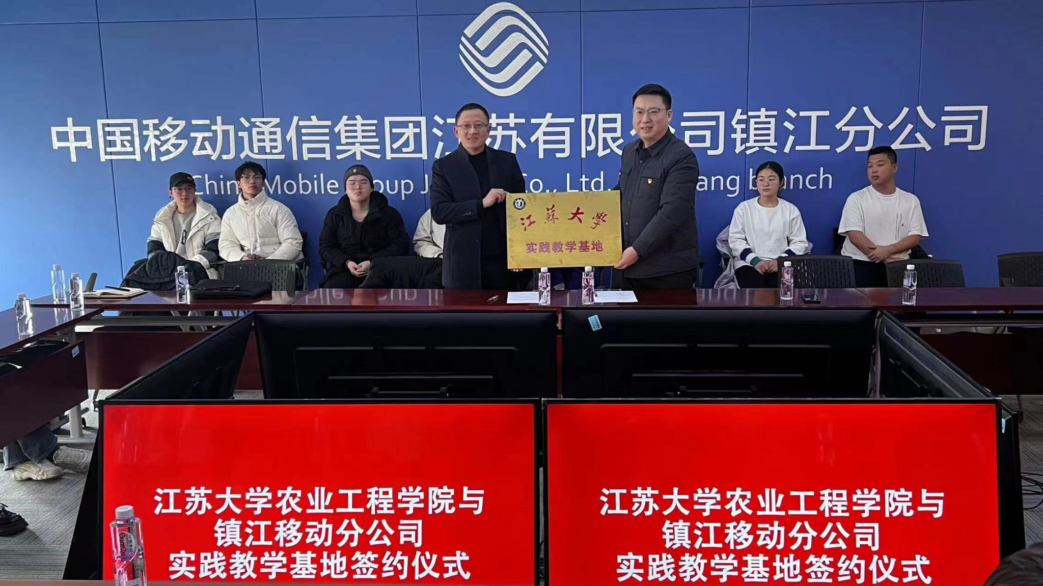 1月11日,iqqtv 党委副书记、副院长周军,农机系主任周脉乐,副主任祝清震等带领农业智能装备工程专业2020级学生赴中国移动通信集团江苏有限公司镇江分公司开展人才培养专题调研。现场举行了iqqtv 与中国移动镇江分公司实践教学实习基地签约暨揭牌仪式,周军与中国移动镇江分公司经理戴宁共同为实践教学基地揭牌。
