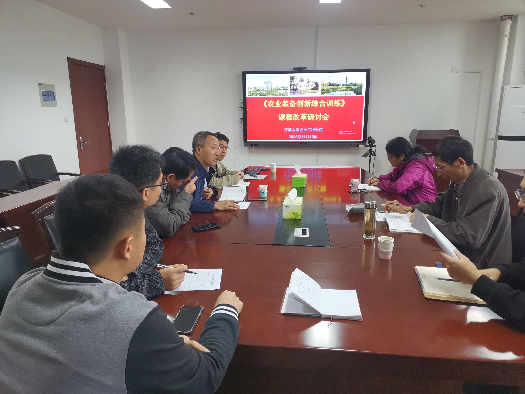 会上,农机系路欣老师介绍了改革后《农业装备创新综合训练》的课程设置、选题思路、分组情况以及可能遇到的问题,其他老师对此进行了热烈的讨论。